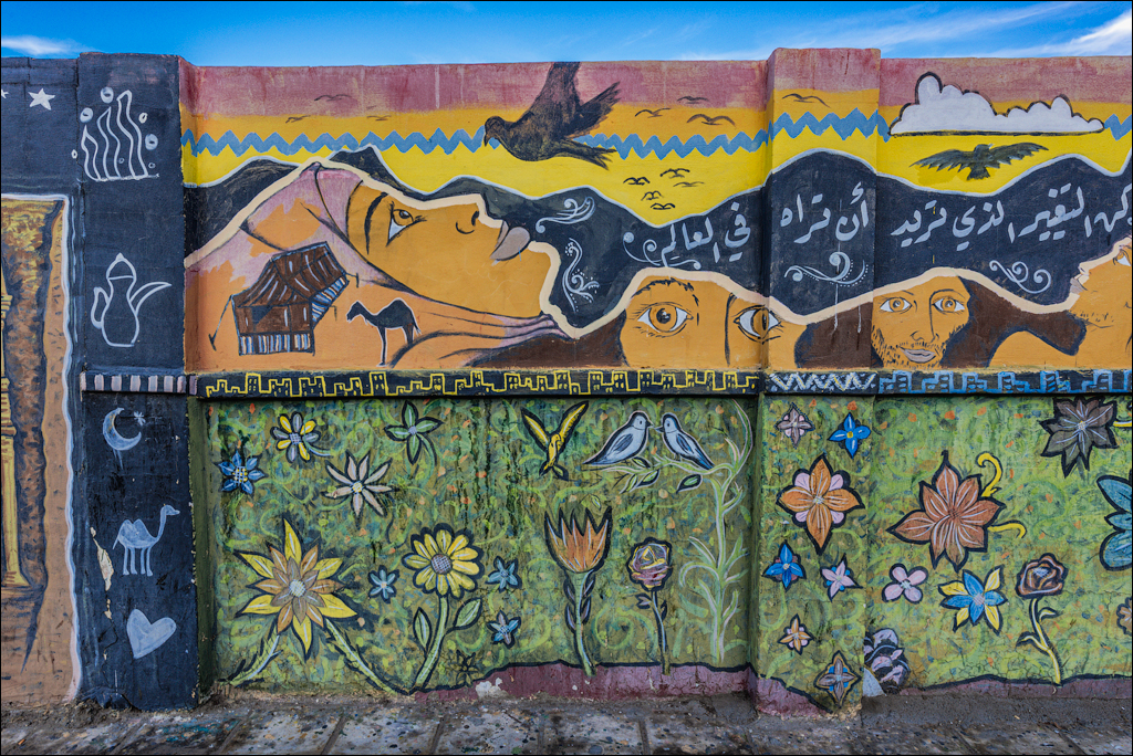 За пополнением коллекции муралов, которых щедро дарят боковые улочки, время течёт незаметно. Куча морской тематики (читайте - дайвинг и рыболовство), сельскохозяйственно-религиозной (уж не замаскировавшийся ли в халат и "арафатку" Иисус у реки Иордан барашков пасёт?!!) Даже знаменитый на весь СССР гарем - Зульфию, Хафизу, Зухру, Лейлу и Саиду - нашёл. Гюльчатай... Где Гюльчатай? А вот она: с муренами в прибрежных коралловых рифах заигралась. В последний раз бросив невесёлый взгляд на Красное, но немилосердно холодное море, проспект Короля Хуссейна и городской пляж - с утра людей единицы, купающихся вообще нет - ныряем в похожие, как близнецы, городские кварталы. Без GPS-навигации здесь никак. Кажется, понимаю, почему они назвали проспект абстрактным "Королём Хуссейном". Когда "Второй" закономерно склеит ласты / бабуши / колечки игаля / что там ещё вышедшим в тираж королям склеивать положено, и на трон взойдёт "Третий", не понадобится вносить корректур в названия улиц и кадастр недвижимости.